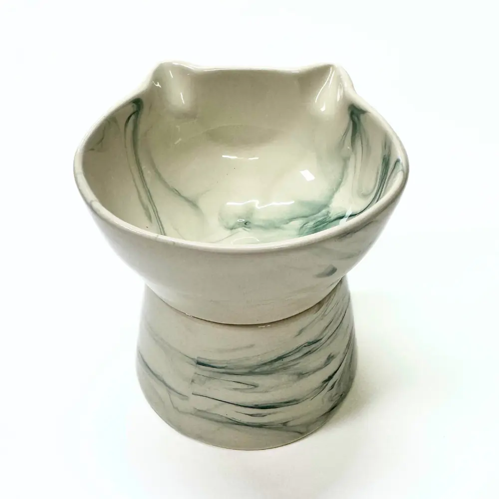 Kedi Figürlü Yüksek Seramik Mama ve Su Kabı– 400 ml