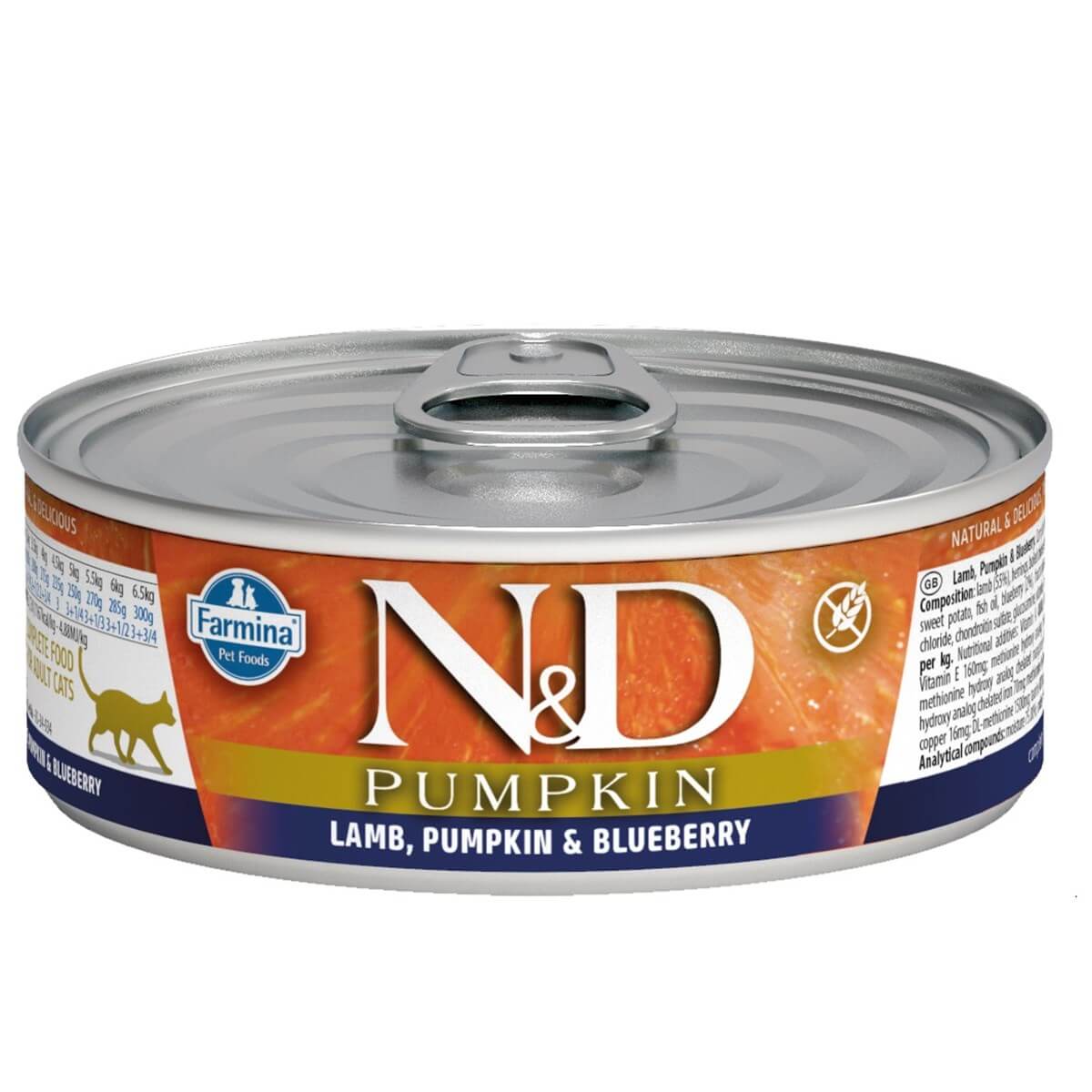 Kuzu (% 55), ringa balığı, haşlanmış tavuk yumurtası, balkabağı (% 5), tatlı patates, balık yağı, yabanmersini (% 2), fruktooligosakkaritler, kolin klorür, kondroitin sülfat, glukozamin, vitaminler, mineraller.