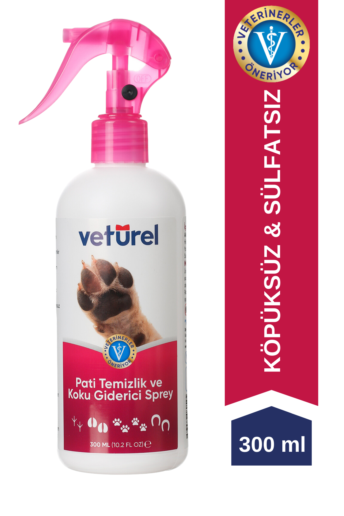 Pati temizliği için patilerin büyüklüğüne göre ihtiyaç duyulduğu kadar spreyleyin.